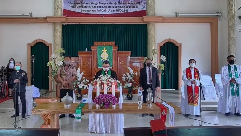Dilanjutkan dengan pengantar kata oleh Ketua Umum Persekutuan Gereja-Gereja di Indonesia (PGI) Pdt Gomar Gultom MTh, secara virtual dari Jakarta.