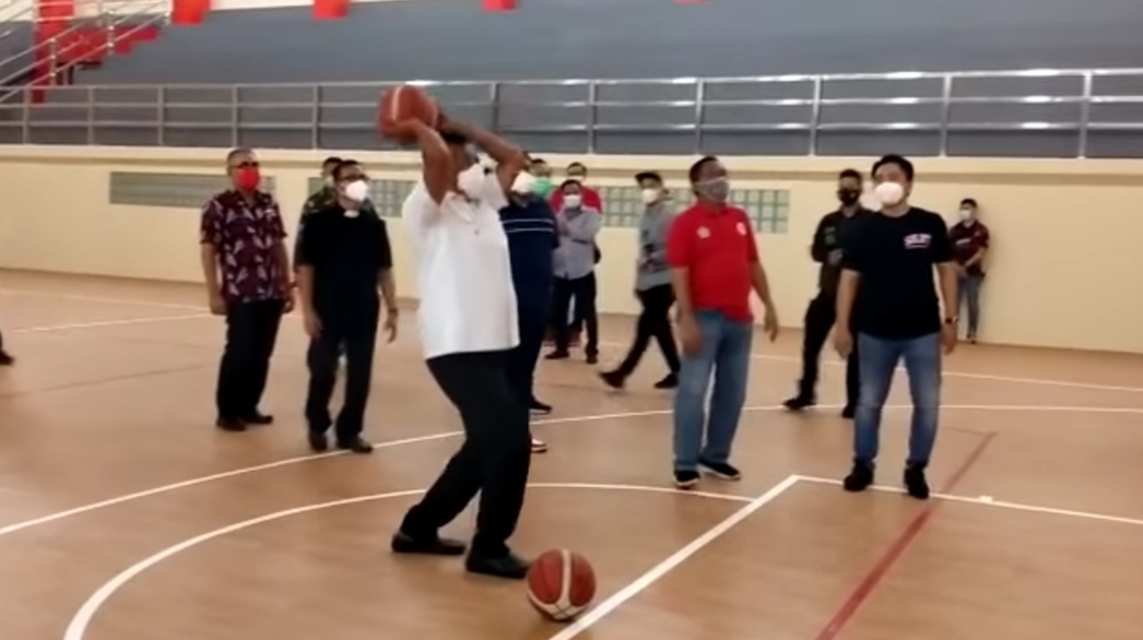 Menariknya, pada momen peresmian tersebut, Gubernur Olly sempat menjajal fasilitas lapangan basket.