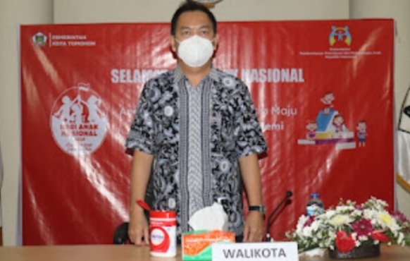 Tomohon, Sulutreview.com – Walikota Tomohon Caroll Joram Azarias Senduk SH menghadiri secara virtual peringatan Hari Anak Nasional (HAN) Tahun 2021, di Command Center Mall Pelayanan Publik Kota Tomohon, Jumat (23/7/2021).
