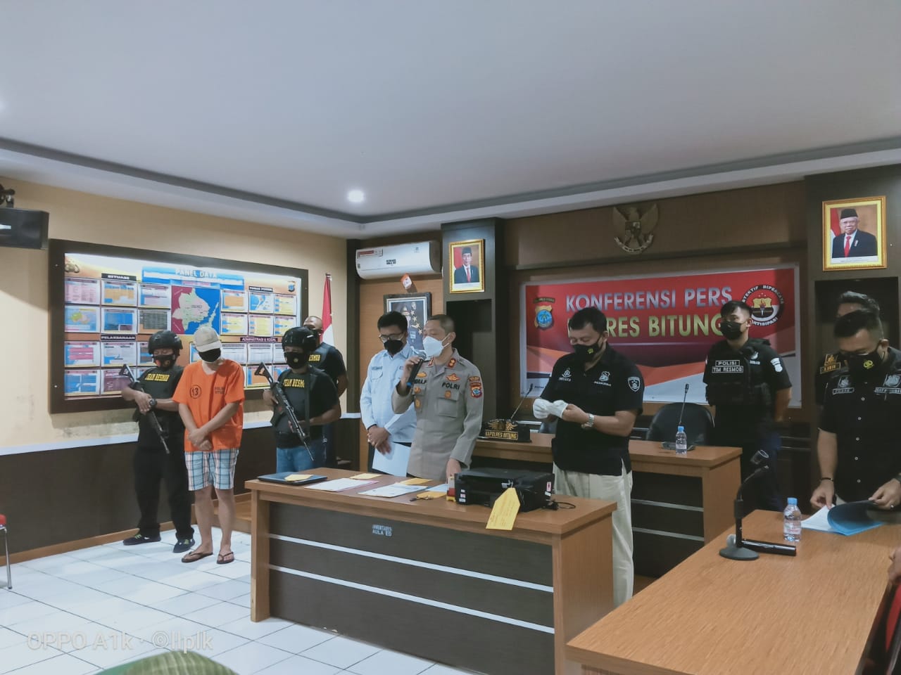 Kapolres Bitung Saat memimpin Konfrensi Pers mengungkap pembuat hasil SWAB PCR Palsu