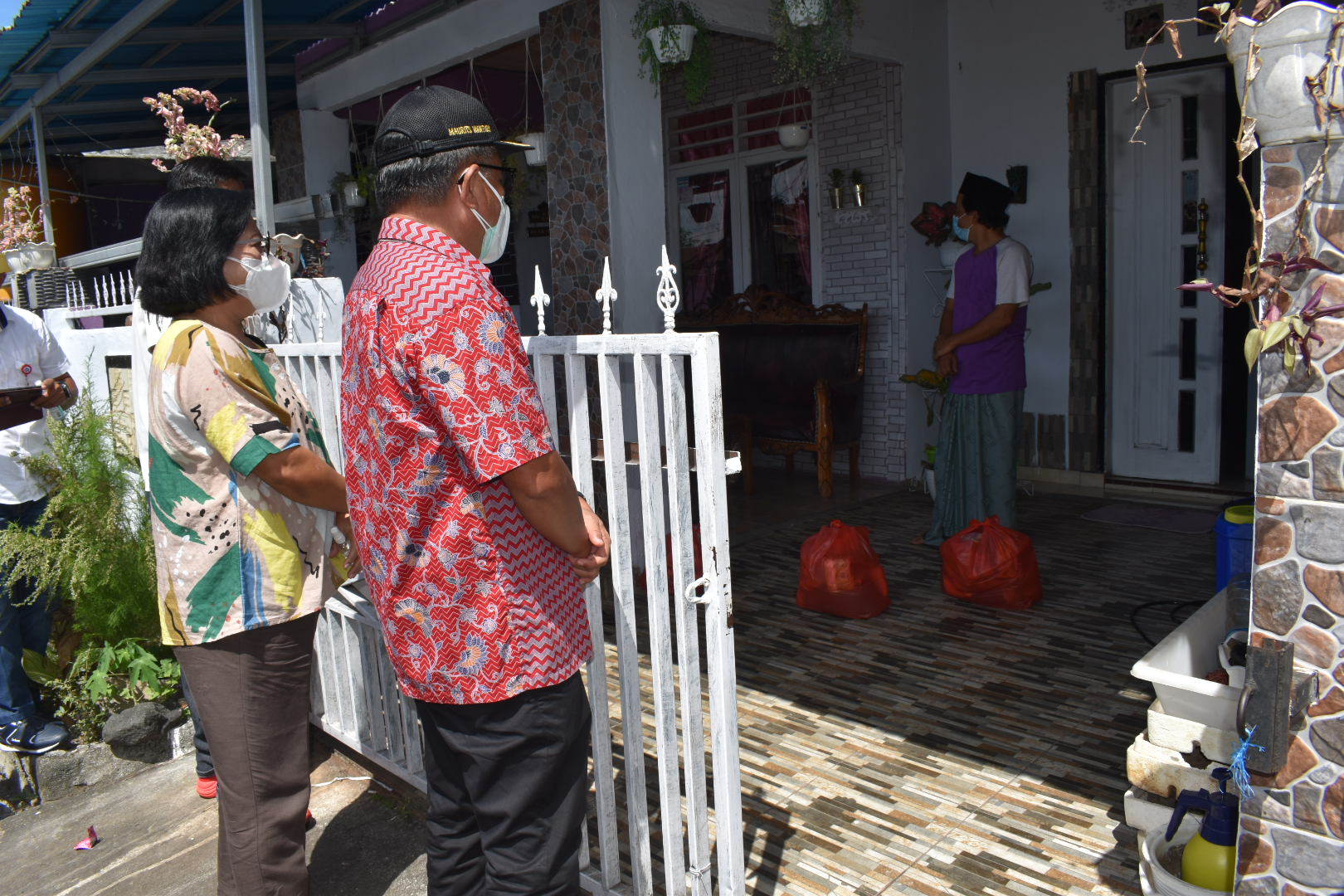 Terpantau, sejumlah wartawan di wilayah Perumahan di Kelurahan Manembo-nembo atas Walikota dan Ketua TP PKK saat menyambangi salah satu warga yang Isoman, Walikota langsung menyapa dari kejauhan dan memberikan semangat.