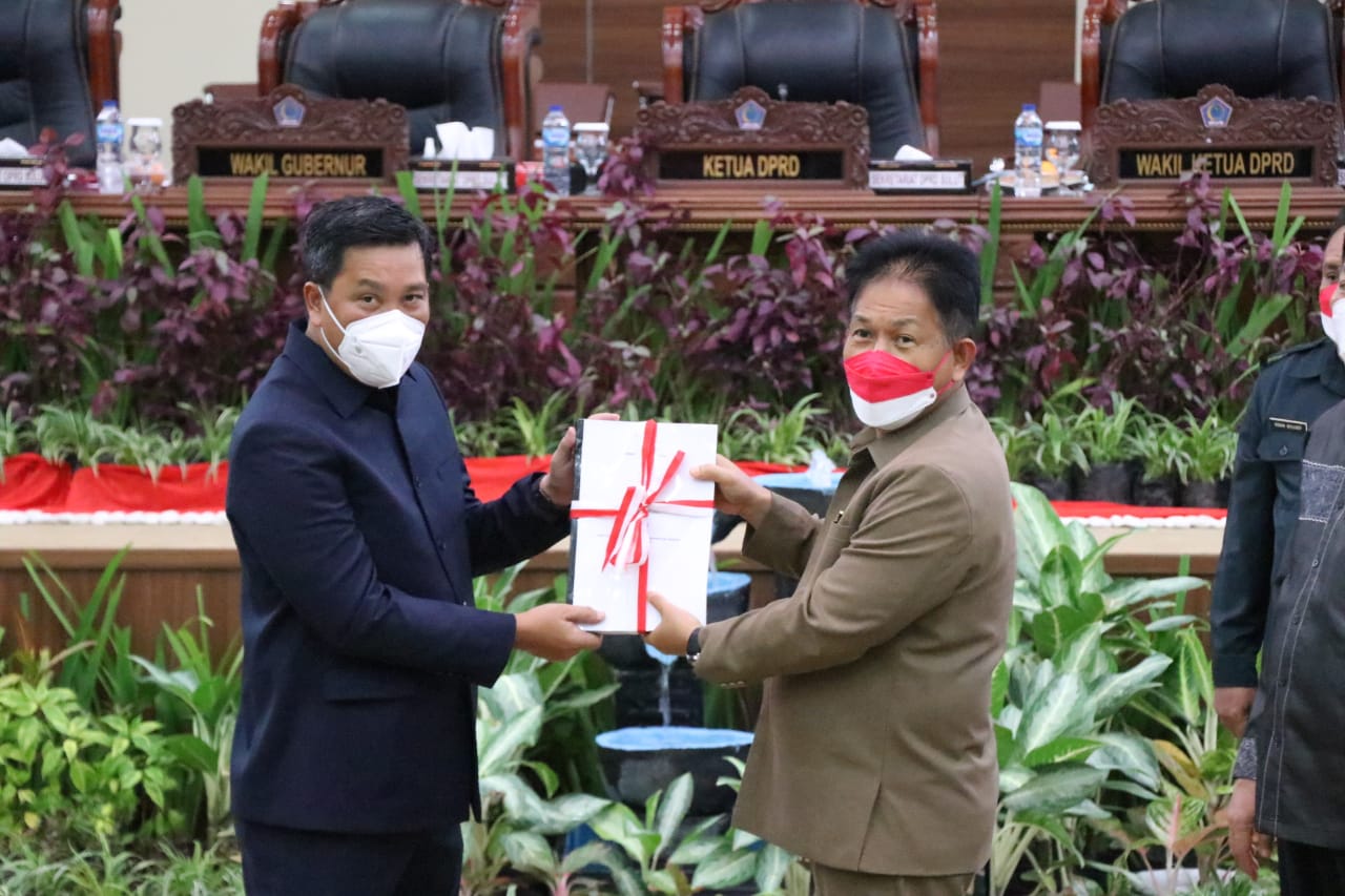 Rapat dilanjutkan dengan penandatanganan persetujuan bersama terhadap Ranperda RPJMD provinsi Sulut tahun 2021-2026 oleh Pimpinan DPRD Sulut dan Wakil Gubernur Sulut yang disaksikan seluruh anggota DPRD Provinsi Sulut, para assisten Pemerintah Provinsi Sulut bersama jajarannya, tokoh masyarakat, undangan dan insan pers yang hadir secara fisik maupun virtual.