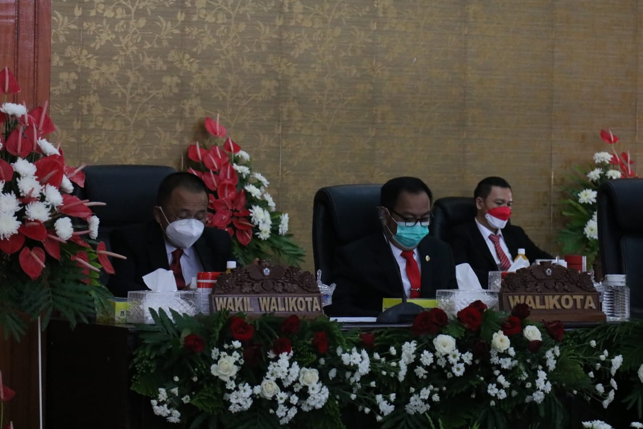 Tomohon, Sulutreview.com – Walikota Tomohon Caroll Joram Azarias Senduk SH bersama Wakil Walikota Tomohon Wenny Lumentut SE mengikuti secara virtual Rapat Paripurna Mendengarkan Pidato Presiden dalam Sidang Tahunan MPR-RI bersama DPR-RI dan DPD RI. Rapat Paripurna dipimpin oleh Ketua DPRD Kota Tomohon Djemmy Sundah SE didampingi Wakil Ketua DPRD Kota Tomohon Drs Jhony Runtuwene DEA, di Ruang Rapat Paripurna DPRD Kota Tomohon, Senin(16/08/2021).