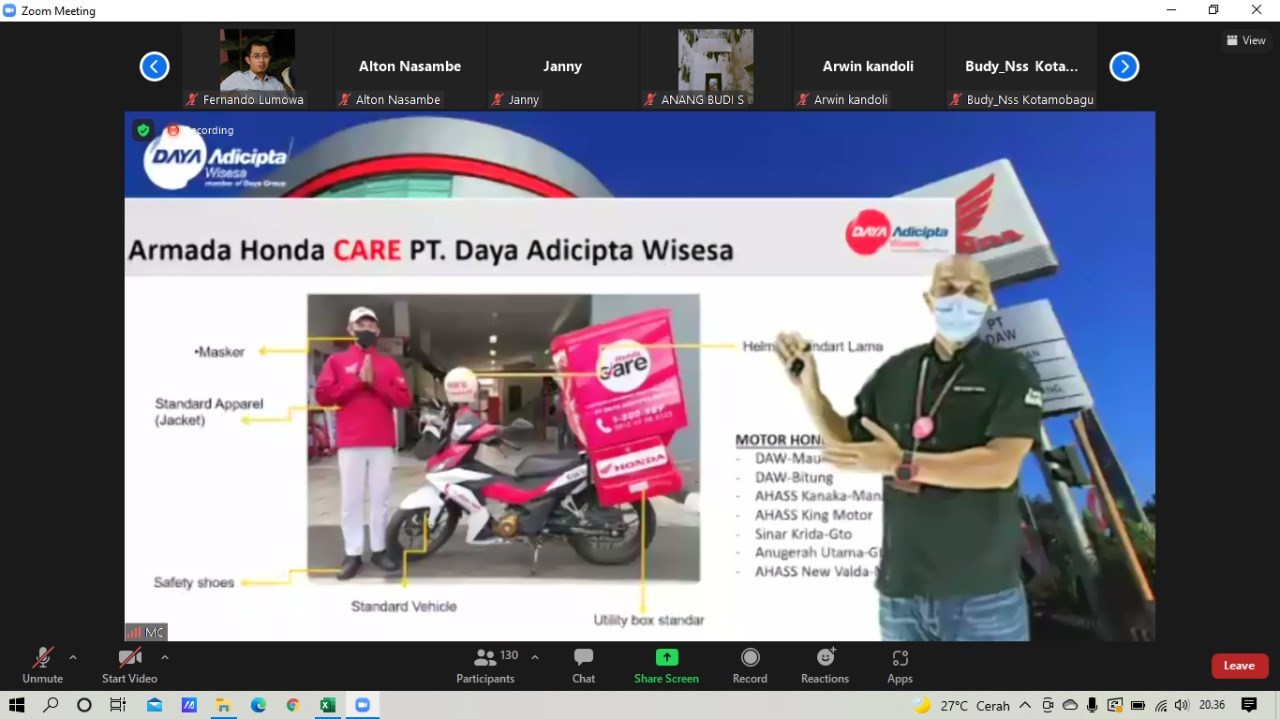 Webinar ini diikuti oleh sekitar 166 peserta yang merupakan pelanggan setia Sepeda Motor Honda dan juga dealer dari area Sulawesi Utara, Gorontalo dan Maluku Utara.