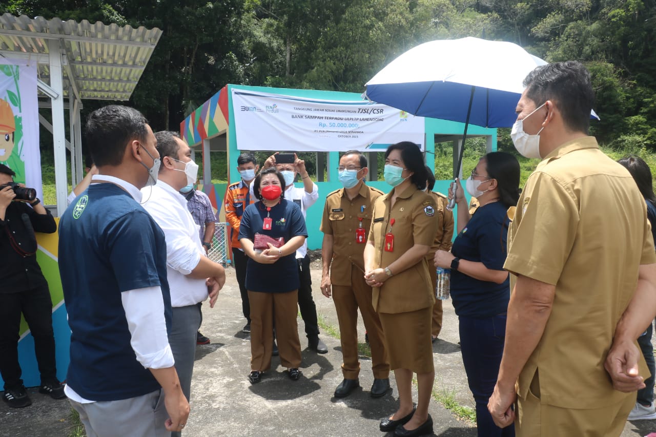 Penyerahan Corporate Social Responsibility (CSR) berupa Bank Sampah Terpadu ULPLTP Lahendong bagi PPA Filadelfia Kelurahan Tondangow dan Pengembangan Usaha UKM Kripik Pisang Goroho Kelurahan Pangolombian.