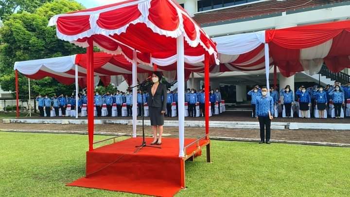 Kepala Badan Kepegawaian Daerah (BKD) Femmy Suluh menjadi inspektur upacara (irup).