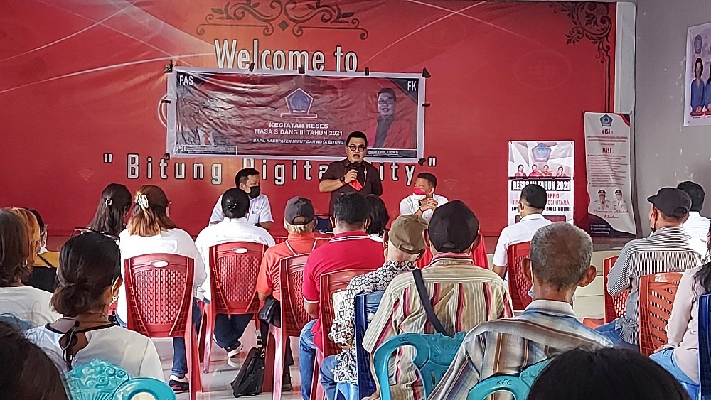 Bitung, Sulutreview.com- Anggota DPRD Provinsi Fraksi PDI Perjuangan Daerah Pemilihan (Dapil) Minahasa Utara (Minut)- Bitung Fabian Kaloh SIP MS.i melaksanakan Reses menyerap aspirasi warga di Masa Sidang kedua tahun 2021.