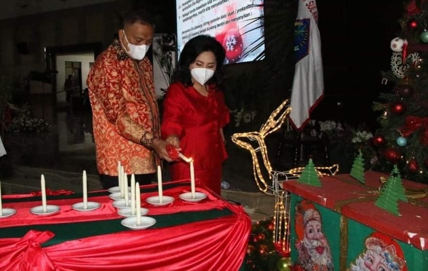 Gubernur Sulawesi Utara, Olly Dondokambey SE dan Wakil Gubernur Drs Steven OE Kandouw menyatu dalam perayaan menyambut Natal Yesus Kristus di Kantor Gubernur Sulawesi Utara, Kamis (09/12/2021).