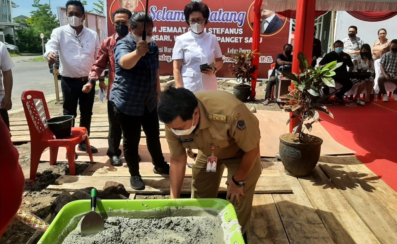 Hadir pada peletakan batu pertama, Ketua Umum PGI Pdt Gomar Gultom.