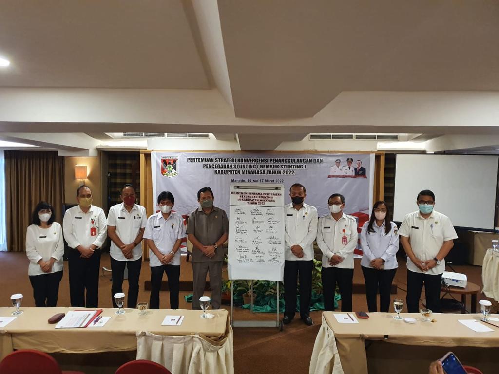 Kegiatan ditandai dengan penandatanganan komitmen bersama dalam hal Percepatan Penurunan Stunting di Kabupaten Minahasa oleh para Kepala OPD yang hadir. Yakni, Kepala Bapelitbang Philip Siwi SE, Kepala Dinas Sosial dr Maya Rambitan MKes, Kepala Dinas PUPR Silvanus Teddy Lumintang ST, Kepala Dinas Kominfo Agustivo Tumundo SE MSi, Plt Kepala Dinas Pendidikan Hansje Wuwungan MPd, Plt Kepala Dinas PPKB Syultje Panambunan SE MAP dan para Camat se-Kabupaten Minahasa, yang turut dihadiri oleh Sekretaris Dinas Kesehatan dr Gabby Doaly MKes, Kepala Bidang Kabid Kesehatan Masyarakat Dinkes Juniani Mogot Amd Farm, Kabid Sumber Daya Kesehatan Dinkes Meity Runtunuwu SKep dan jajaran Pemkab Minahasa.(engel)
