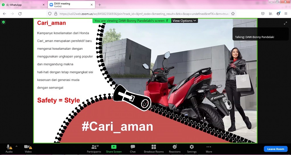 Pengenalan mengenai pentingnya keselamatan dijalan raya harus diketahui oleh semua orang termasuk karyawan DAW. Edukasi kali ini diikuti oleh seluruh karyawan DAW yang dilakukan secara virtual melalui platform Zoom meeting.