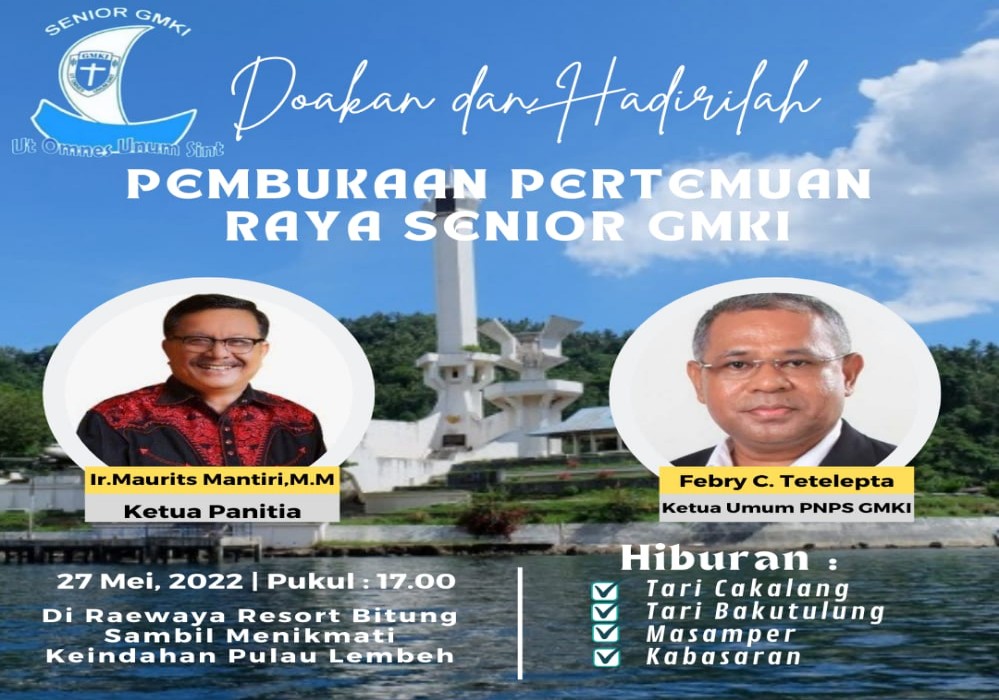 Bitung, Sulutreview.com– Untuk yang pertama kalinya Kota Bitung Sulawesi Utara (Sulut) akan menjadi tuan rumah pertemuan akbar Senior Gerakan Mahasiswa Kristen Indonesia (GMKI) se-Indonesia yang akan dilaksanakan pembukaanya di Raewaya Resort pada Jumat 27 Mei tahun 2022.