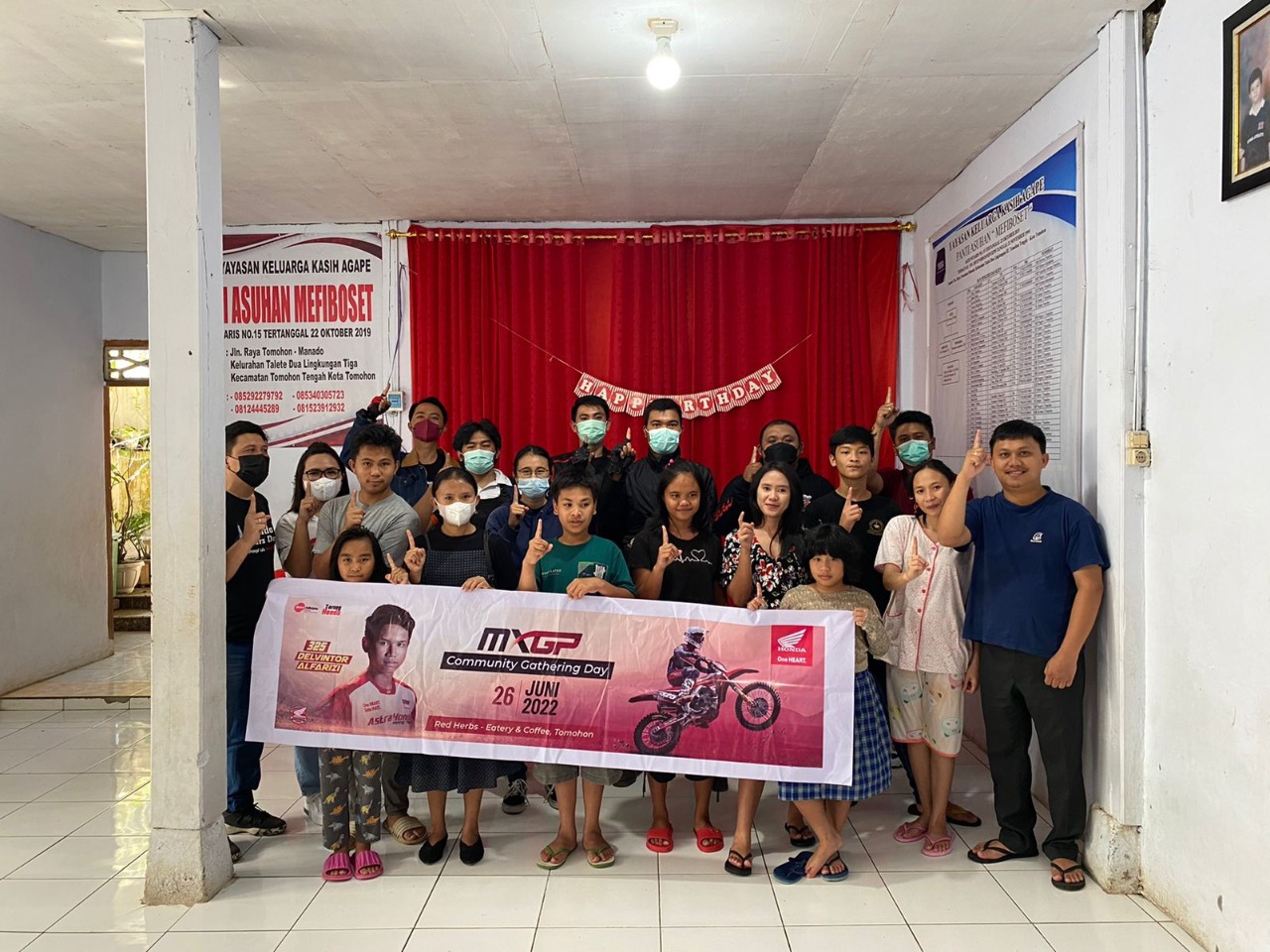 Pada kesempatan tersebut, para bikers juga melaksanakan program aktivitas sosial dengan memberikan bantuan uang tunai di Panti Asuhan Mefiboset Tomohon. Program ini menjadi langkah bersama para komunitas Sepeda Motor Honda dalam program sosial berkontribusi bagi bangsa.