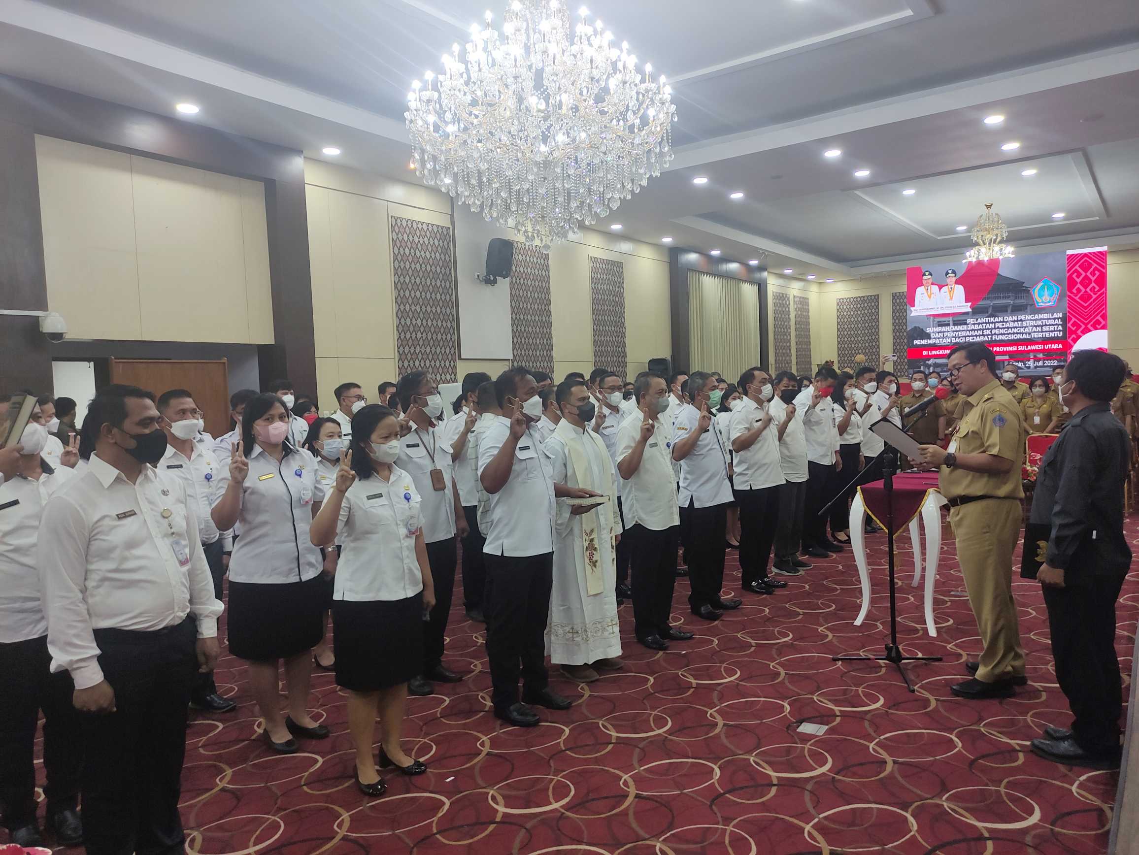 Manado, Sulutreview.com – Wakil Gubernur Sulawesi Utara (Sulut) Steven OE Kandow melantik 71 pejabat eselon III dan IV yang siap menempati jabatan baru di ruang CJ Rantung Kantor Gubernur Sulut, Senin (25/7/2022).