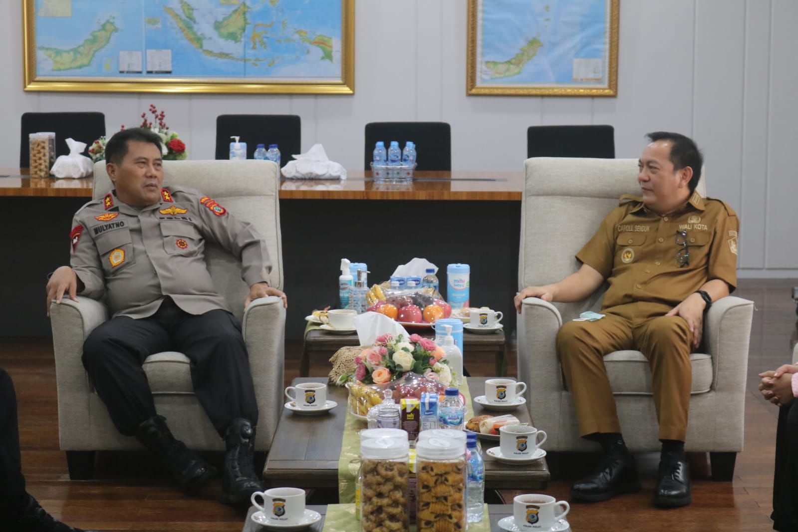 pelaksanaan Tomohon International Flower Festival (TIFF) 2022, Walikota Tomohon Caroll J A Senduk SH bersama Sekot Edwin Roring SE ME melakukan pertemuan dengan Kapolda Sulawesi Utara Irjen Pol Drs Mulyatno SH MM di ruang kerja Kapolda, pada selasa (26/7/2022).