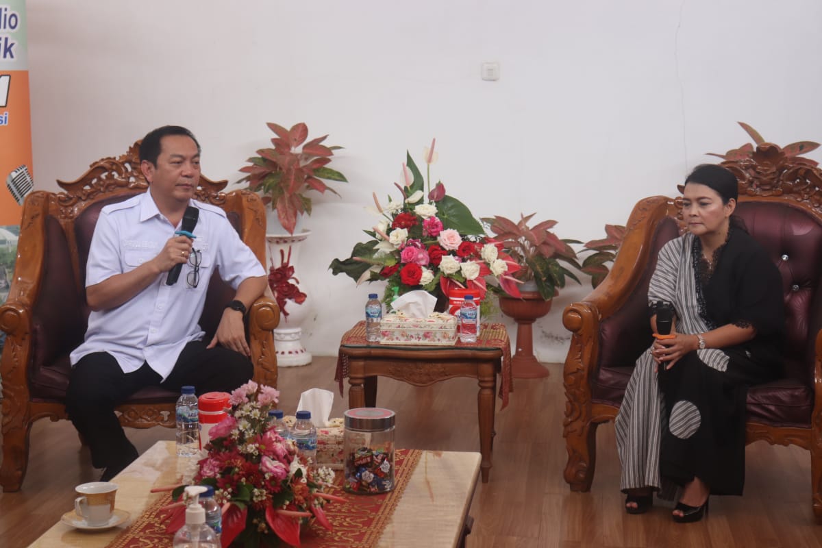 Walikota Tomohon Caroll Joram Azarias Senduk SH dan Ketua Umum Tomohon Internasional Flower Festival 2022, Vonny Pangemanan memanfaatkan moment promosi TIFF 2022 dengan melakukan dialog interaktif bersama Radio Republik Indonesia (RRI) Manado, di ruang Pertemuan Walikota Tomohon, Rabu (27/7/2022).