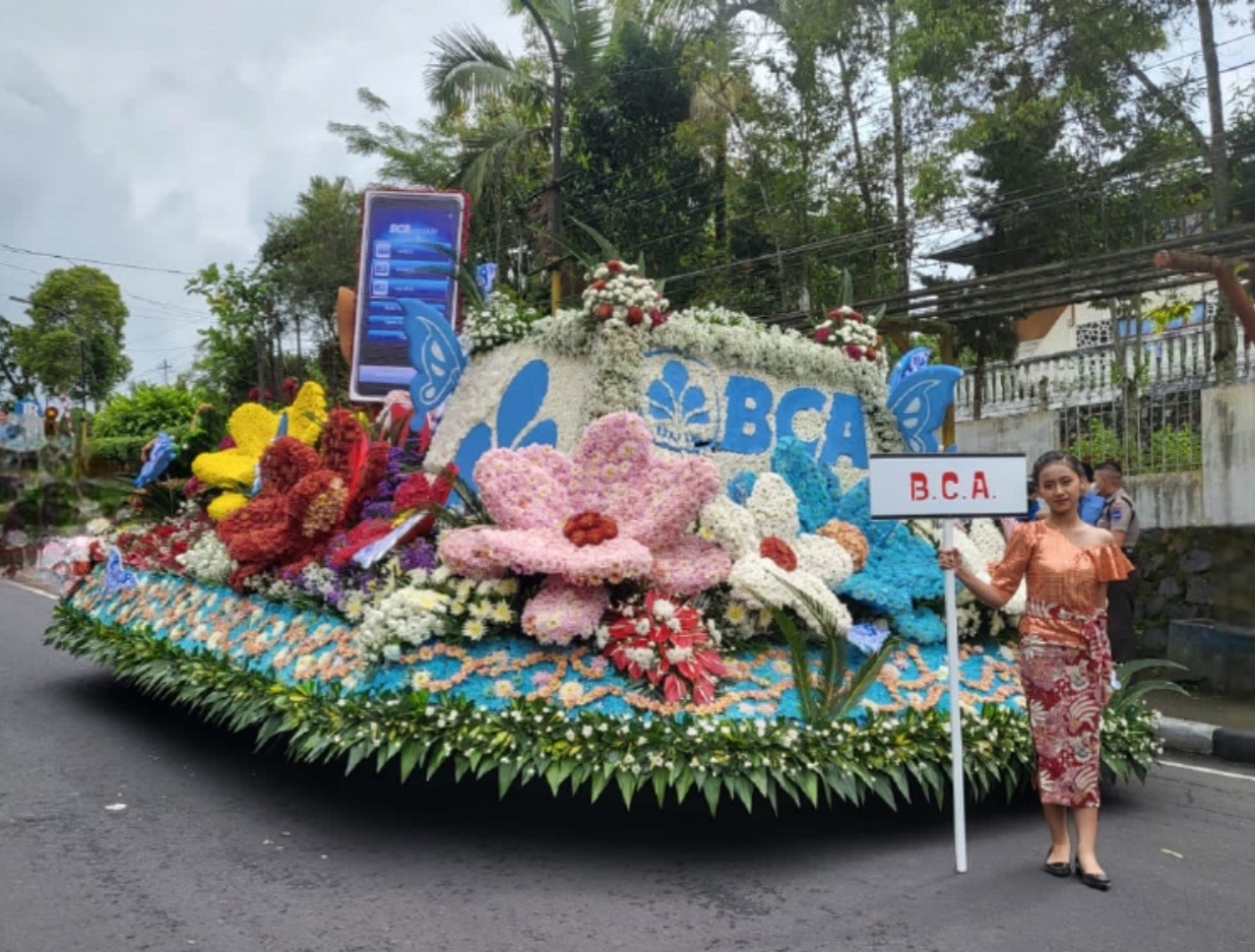BCA turut memeriahkan kegiatan tersebut dengan menghadirkan float kendaraan bertema BCA mobile dengan hiasan kupu-kupu dan bunga-bunga cantik.