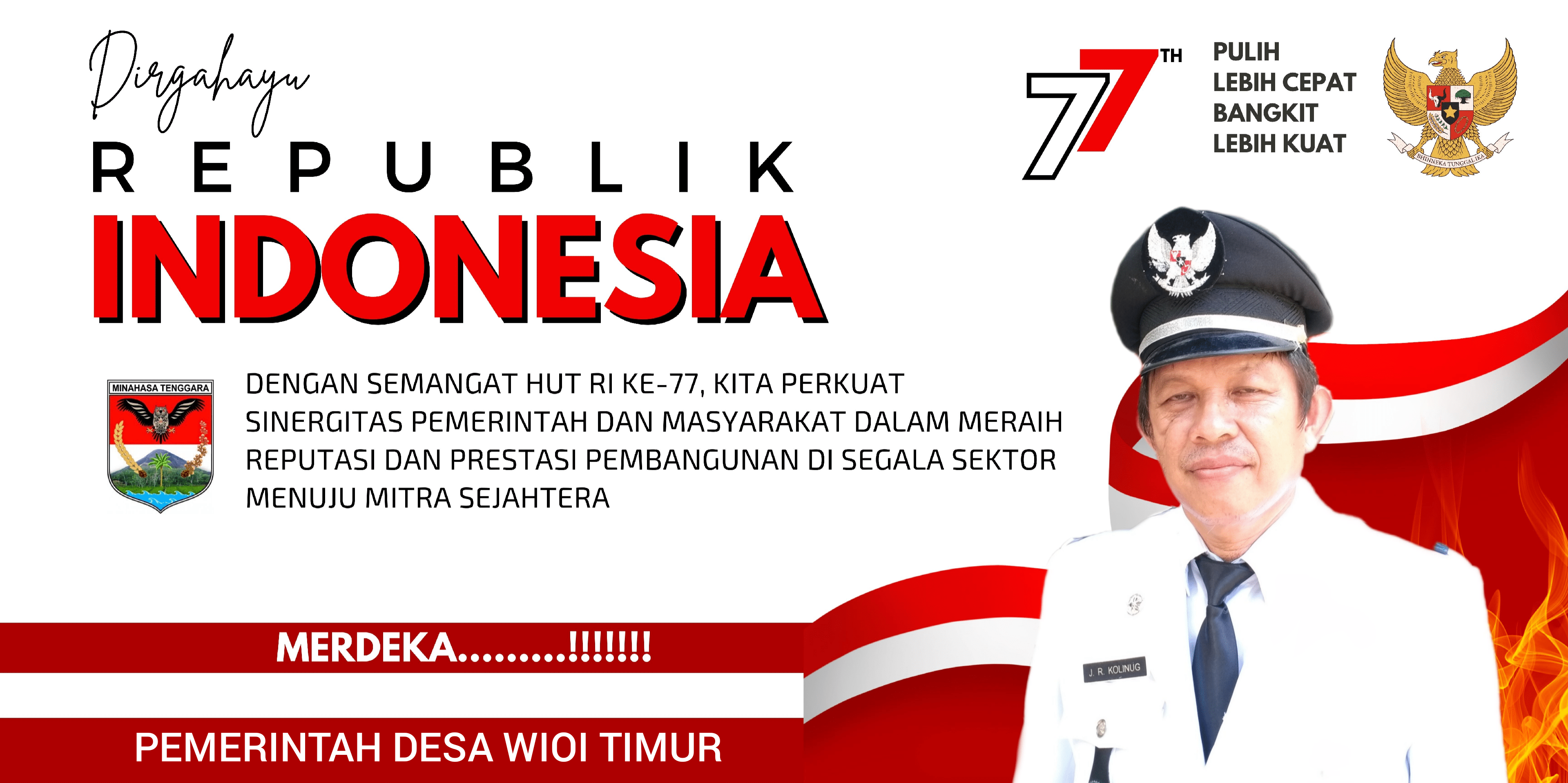Pemerintah Desa Wioi Timur Kecamatan Ratahan Timur Kabupaten Minahasa Tenggara mengucapkan Dirgahayu ke-77 Kemerdekaan Republik Indonesia