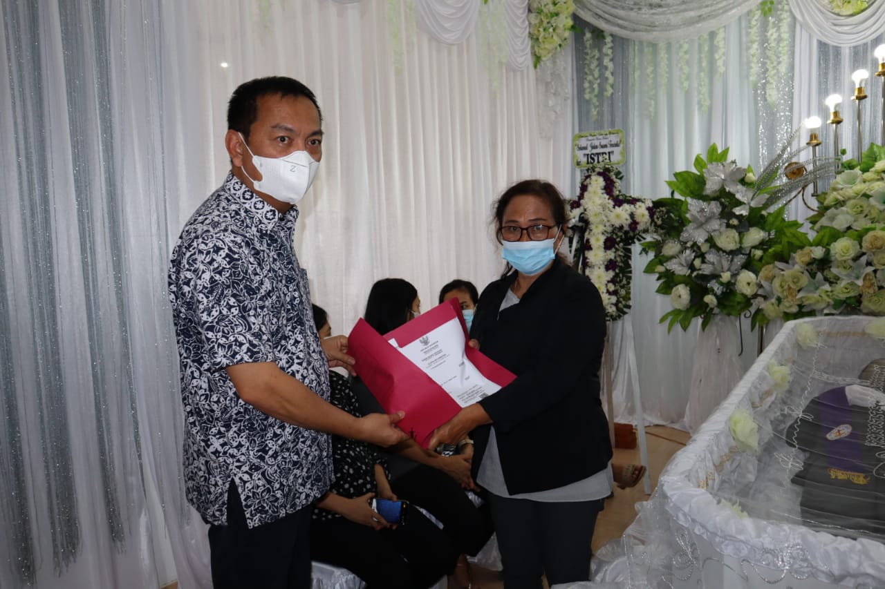 Pada kesempatan tersebut Walikota menyerahkan langsung bantuan dana dula kepada keluarga yang berduka. (Cel)
