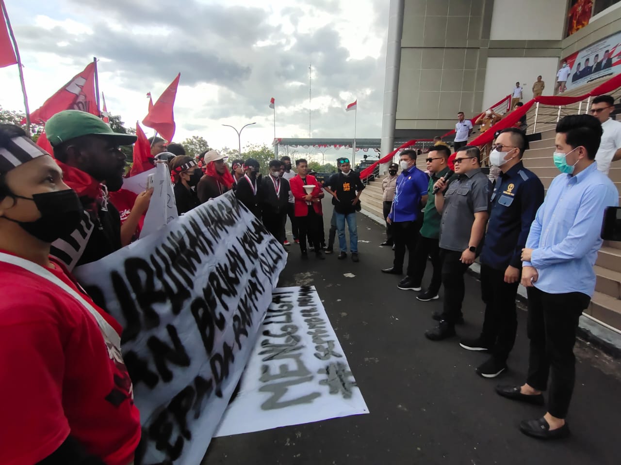 Kesebelas poin tuntutan yang dibacakan dengan suara lantang oleh Ketua GMNI Manado, Fernando Tampi di depan anggota DPRD Sulut dan meminta agar DPRD Sulut akan memberikan berita acara tindak lanjut penyerahan aspirasi paling lambat dalam waktu satu pekan.