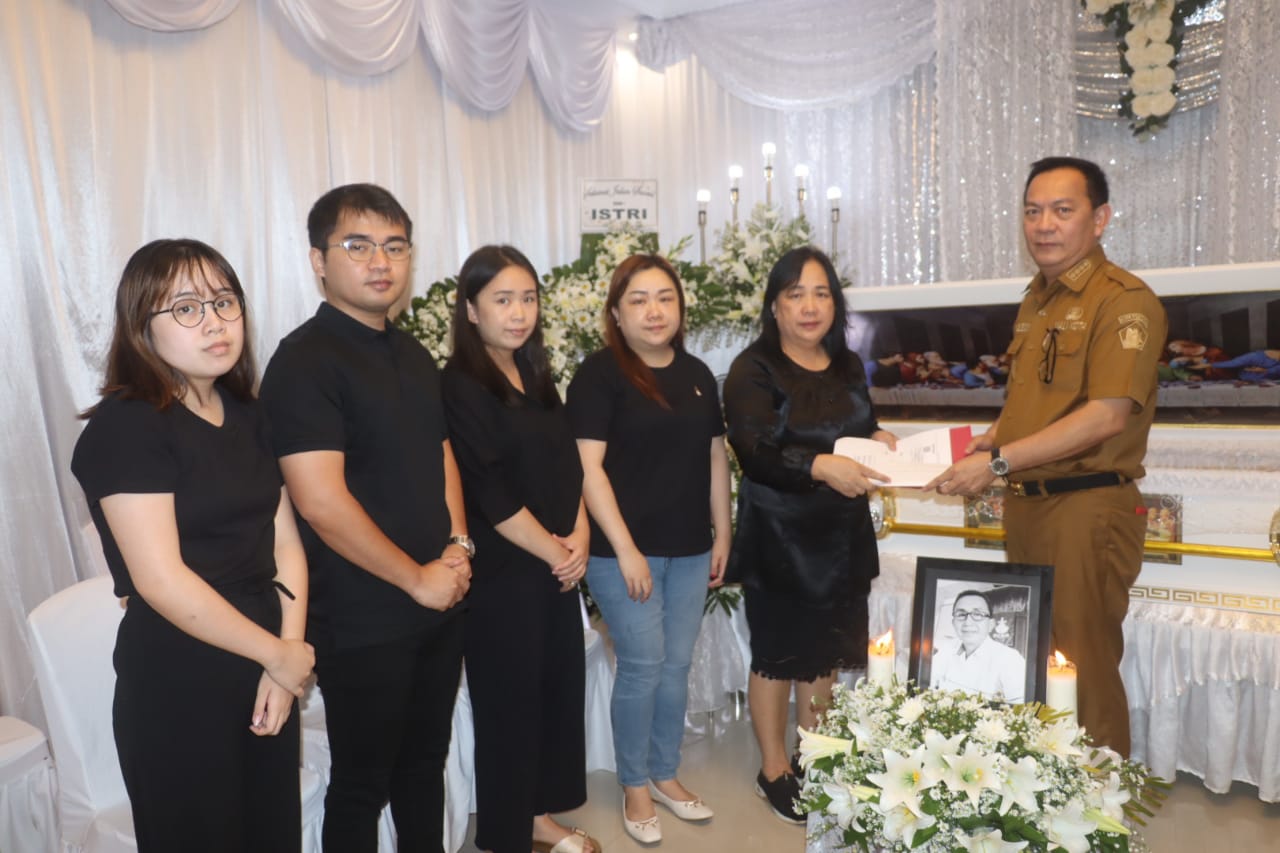 kesempatan itu, Walikota Tomohon menyerahkan santunan duka Pemerintah Kota Tomohon kepada keluarga yang berduka.