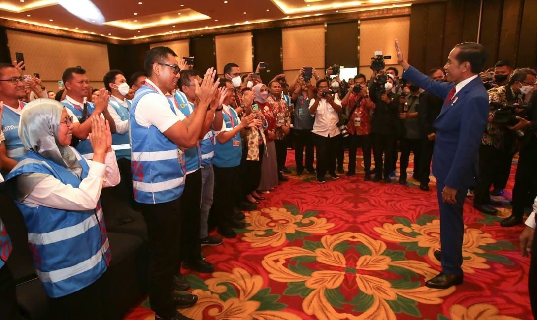 Sebelum meninggalkan acara Syukuran Panitia Nasional KTT G20 Indonesia 2022, Jokowi menyempatkan diri menghampiri Direktur Utama PLN serta seluruh petugas siaga dan menyampaikan apresiasinya.