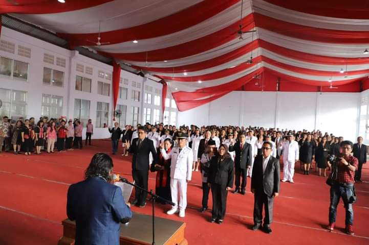 Adapun pejabat eselon dua yang dilantik dan diambil sumpah janji yakni Kadis PUPR Novie Legi, Kadis Perkim Rommy Ole, Staf Ahli Olvie Tambayang dan Kadis Sosial Selvie Lendombela.