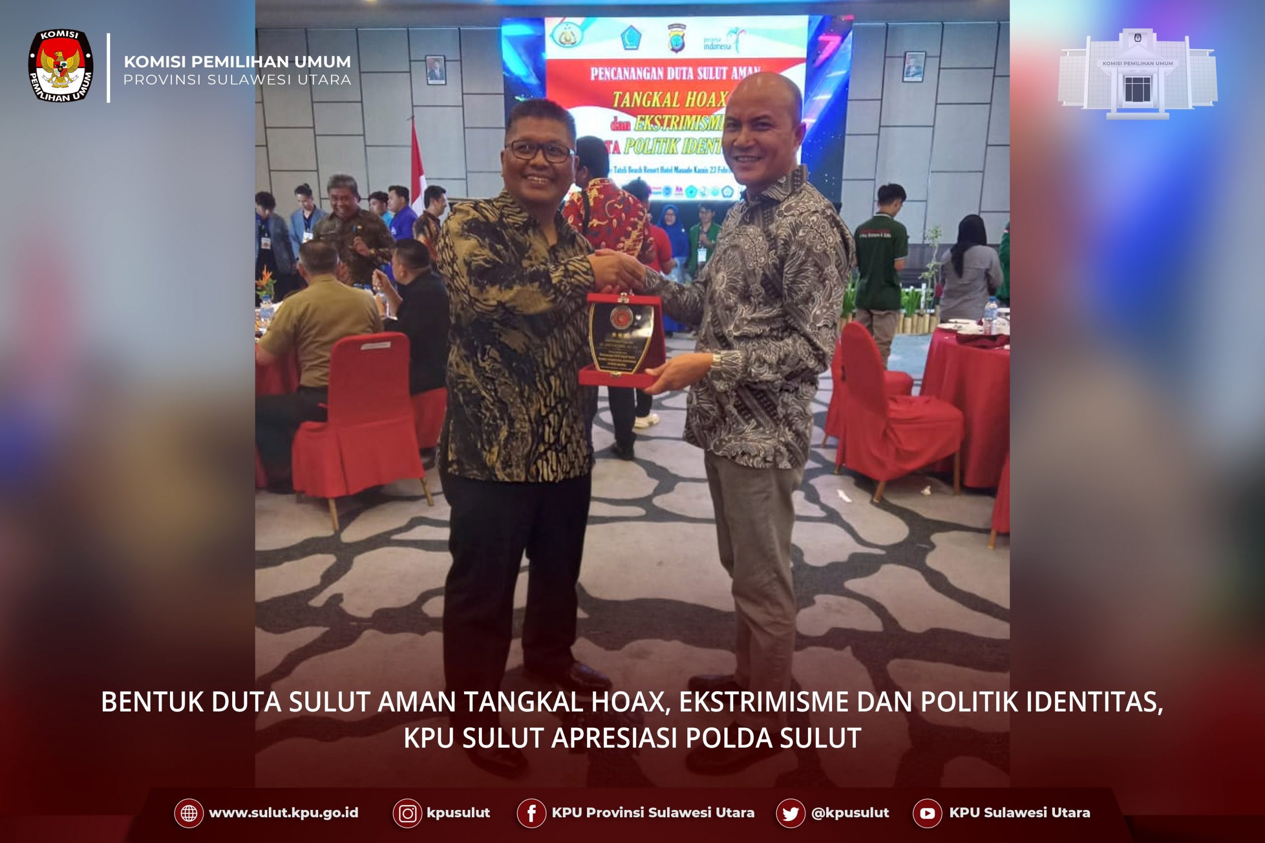 Manado, Sulutreview.com – Komisi Pemilihan Umum (KPU) Provinsi Sulawesi Utara (Sulut) memberikan apresiasi tertinggi kepada Polda Sulut yang telah merekrut para muda-mudi Sulut menjadi Duta Sulut Aman.
