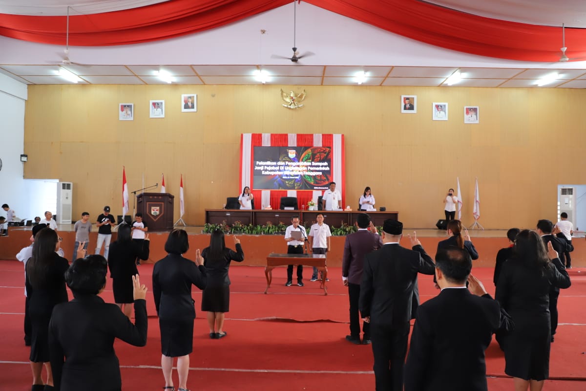 Mitra, Sulutreview – Pemerintah Kabupaten (Pemkab) Minahasa Tenggara (Mitra) melalui Badan Kepegawaian dan Pengembangan Sumber Daya Manusia (Bkpsdm) agendakan pelantikan dan pengambilan sumpah janji pejabat, bertempat di Sport Hall DPRD Mitra, Rabu 1 Maret 2023
