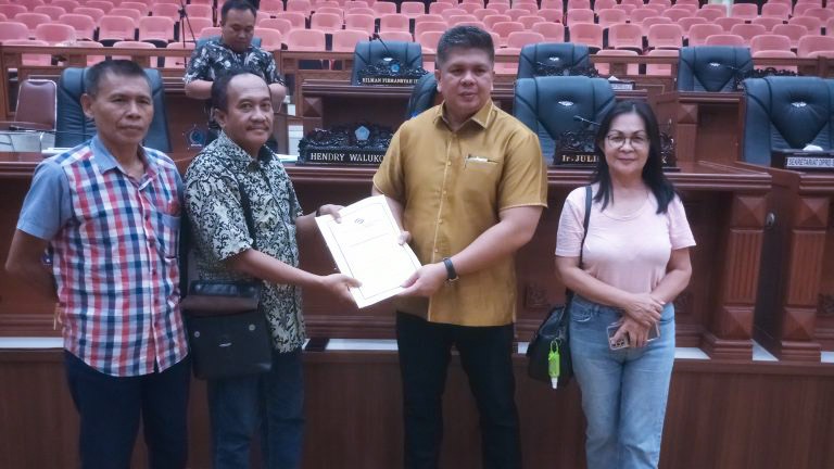 Manado, Sulutreview.com – Sekretaris Komisi I DPRD Sulut Hendry Walukouw usai mengikuti kegiatan Rapat Paripurna, secara resmi menerima aspirasi yang disampaikan oleh pegawai dan pensiunan Perum Percetakan Negara Republik Indonesia (PNRI) Cabang Manado, Jumat (10/3/2023) di ruangan rapat paripurna.
