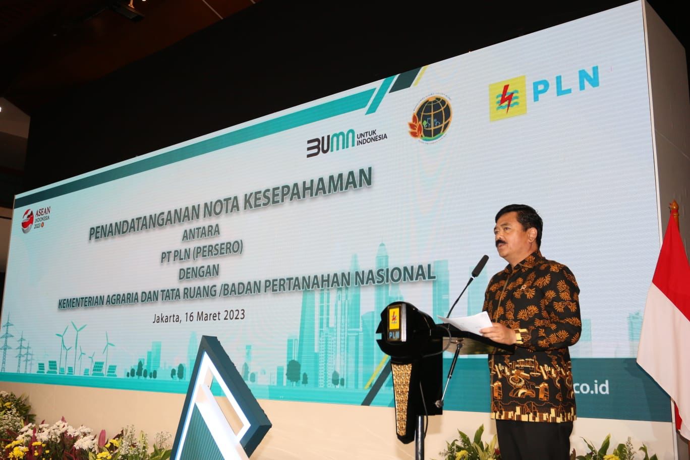Penandatanganan kerja sama dilakukan oleh Menteri ATR/BPN, Hadi Tjahjanto dan Direktur Utama PLN, Darmawan Prasodjo, pada Kamis (16/3) di PLN Kantor Pusat, Jakarta.