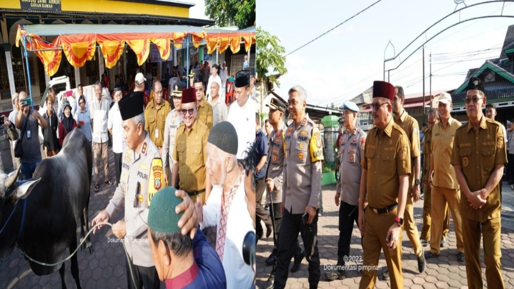 Bitung, Sulutreview.com– Wali Kota Bitung Ir. Maurits Mantiri MM bersama Wakil Wali Kota Bitung Hengky Honandar SE mendampinggi Kapolda Provinsi Sulawesi Utara Irjen Pol. Drs. Setyo Budiyanto, S.H., M.H saat membagikan daging sapi kepada warga muslim di Kecamatan Girian, Senin (17/04/2023).