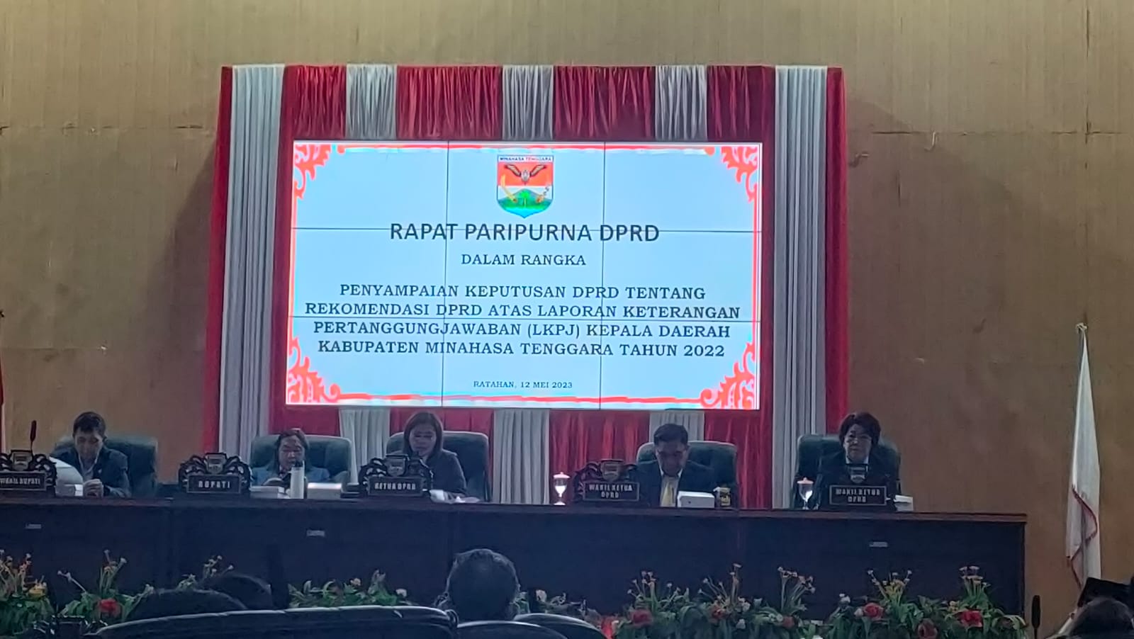 Mitra, Sulutreview – Bupati Kabupaten Minahasa Tenggara (Mitra), James Sumendap, SH, MH, menghadiri Rapat Paripurna dalam rangka Penyampaian Keputusan DPRD tentang Rekomendasi DPRD atas Laporan Keterangan Pertanggungjawaban (LKPJ) Kepala Daerah Tahun 2022, bertempat di Sport Hall DPRD Mitra, Jumat 12 Mei 2023