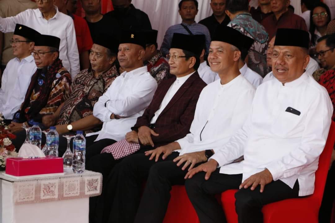 Usai melakukan sejumlah kegiatan sejak pagi, Ganjar Pranowo bersama rombongan, menyempatkan waktu untuk menghadiri halal bihalal atau silaturahmi bersama umat muslim di Kota Manado.