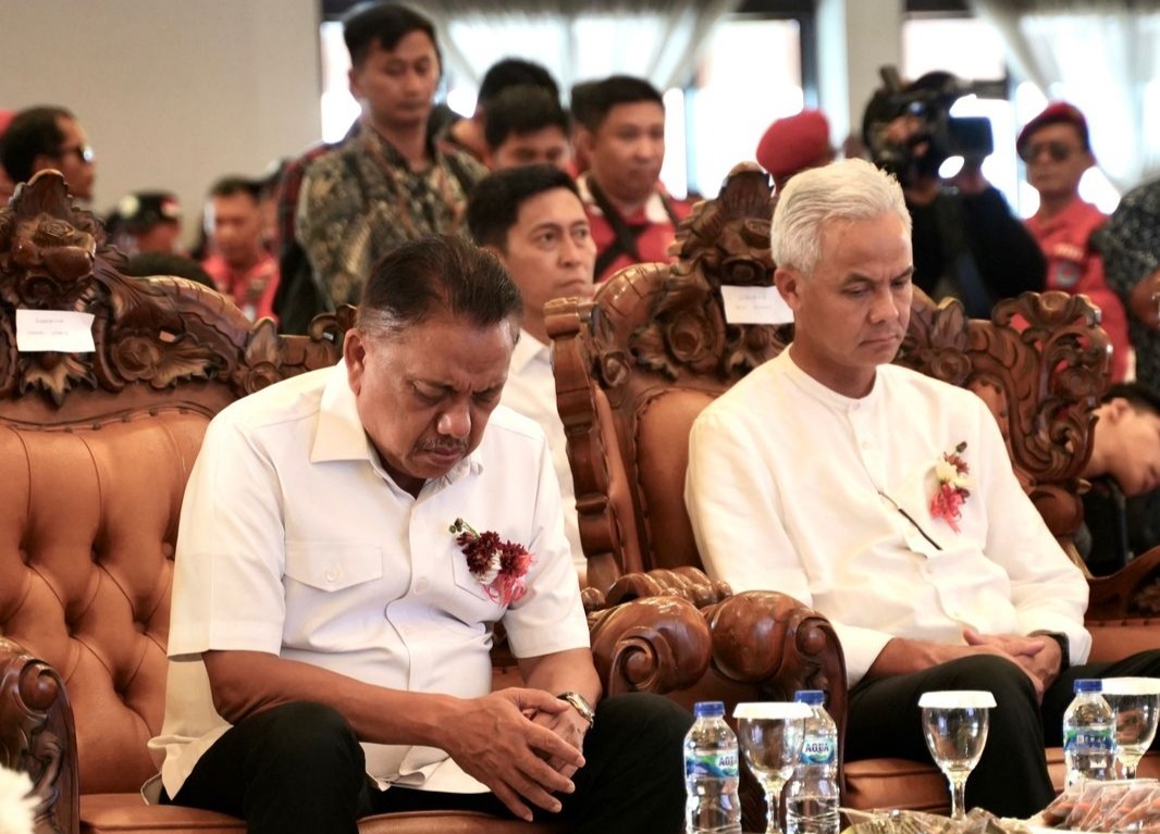 Ganjar yang didampingi Gubernur Sulut, Olly Dondokambey ikut didoakan para tokoh agama yang tergabung dalam gereja-gereja anggota SAG Sulutteng.