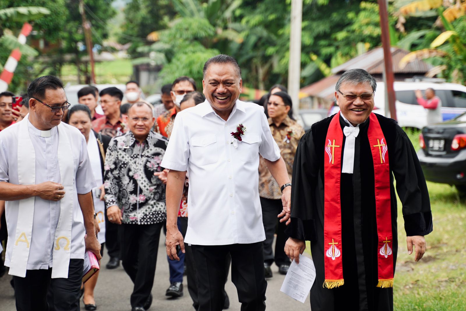 Olly menyampaikan kabar gembira tersebut, dalam bentuk testimoni, saat menyampaikan sambutan kepada jemaat di tengah suasana ibadah syukur pentahbisan dan peresmian pastori 3 GMIM Moria Kolongan, Kamis (18/05/2023).