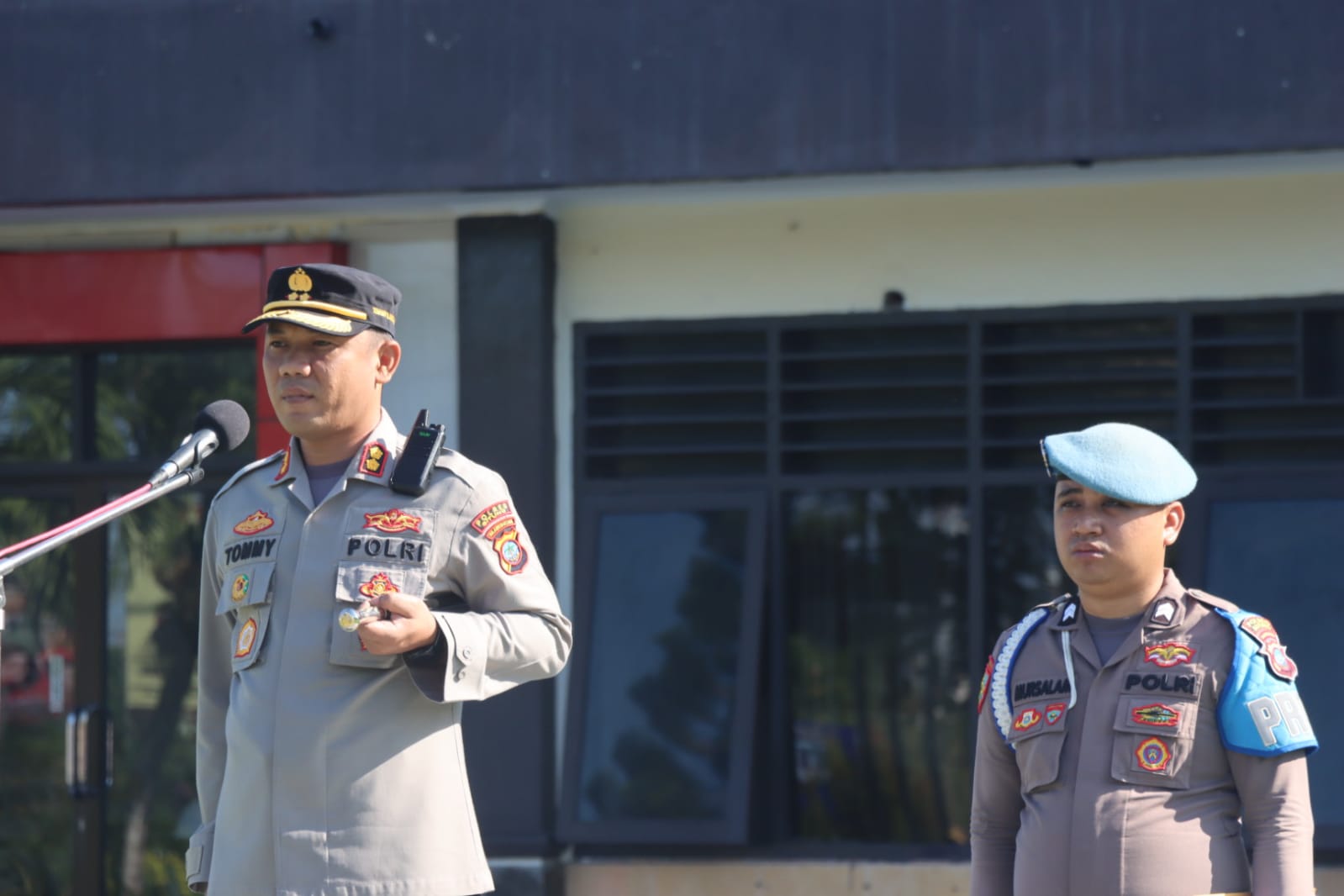 Mendengar penyampaian Kapolres. Kasat Reskrim AKP Marselus Yugo Amboro SIK langsung secara spontan menyerukan kata siaaap.(zet)