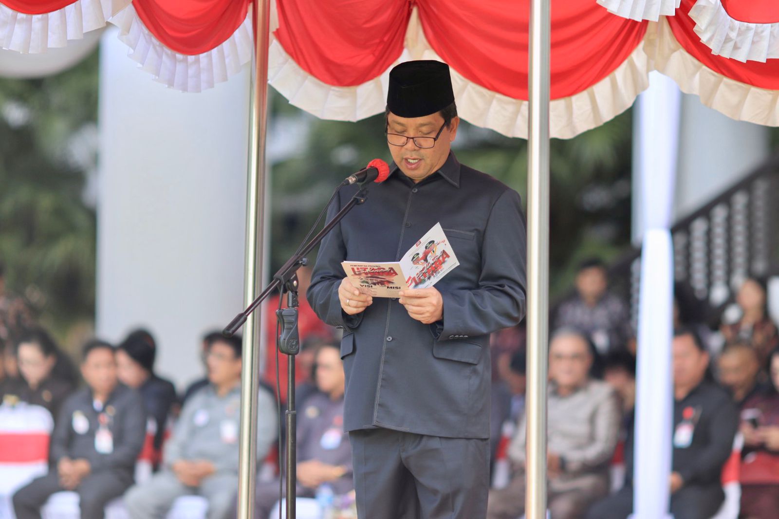 Upacara diikuti Ketua DPRD Sulut, Fransiscus Andi Silangen, Sekprov Sulut Steve Kepel dan jajaran pejabat serta Aparatur Sipil Negara (ASN) yang kompak mengenakan batik.(eda)