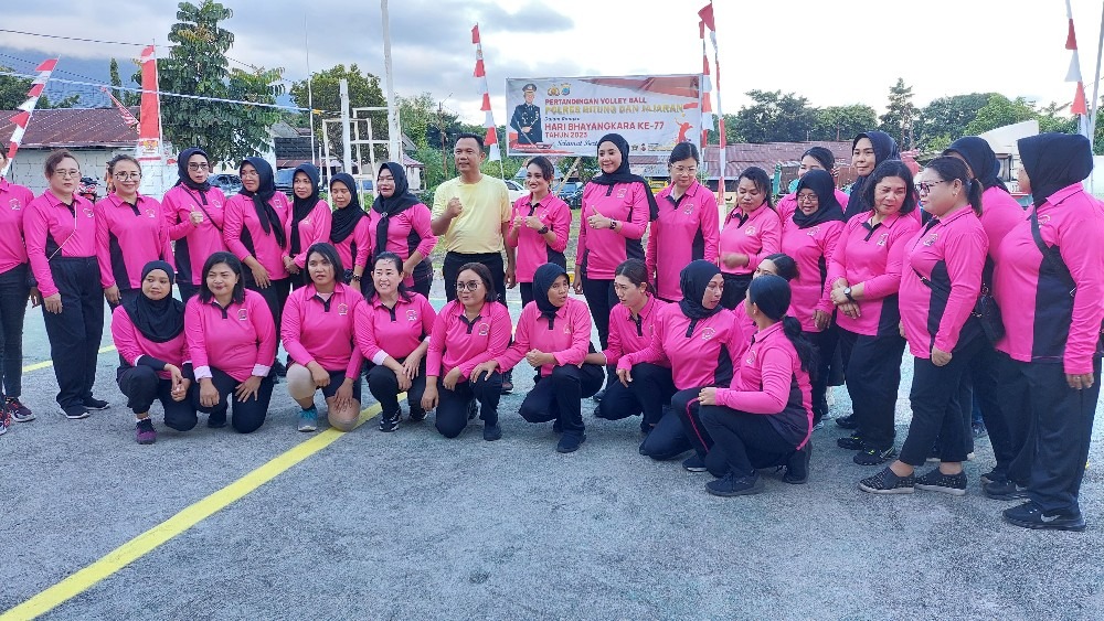 Bitung, Sulutreview.com– Selain didominasi jajaran personil Bhayangkara Polres Bitung di perlombaan menyambut HUT Bhayangkara ke-77. Jajaran Ibu-Ibu Bhayangkari yang dipimpin Ny Melda Tommy Souissa pun meramaikan di perlombaan tersebut dengan mengikuti Lomba Volley Ball.