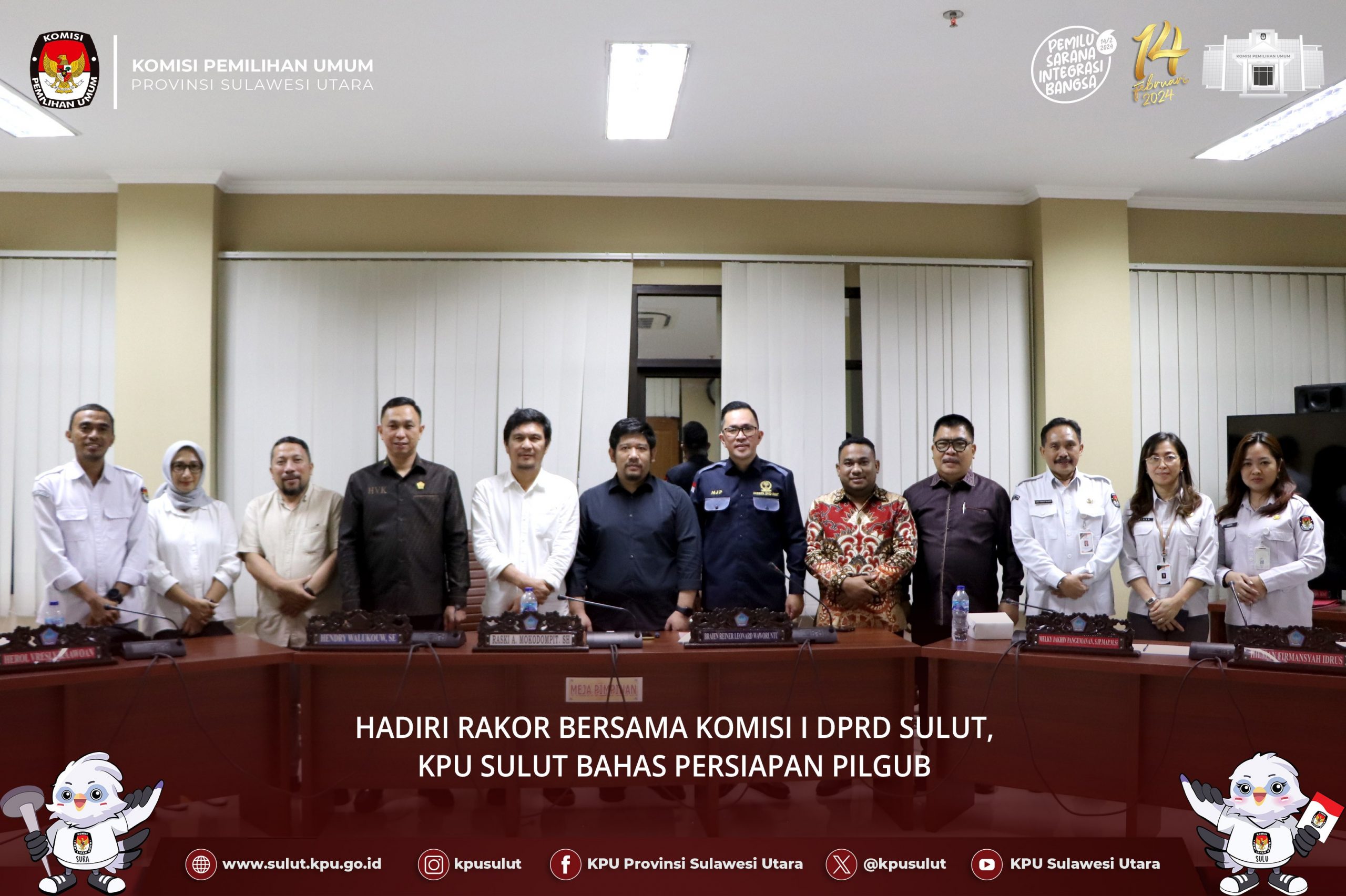 Rapat dipimpin Ketua Komisi 1 DPRD Provinsi Sulut Rasky Mokodompit. Rapat tersebut membahas kesiapan KPU dalam rangka penyelenggaraan Pemilihan Umum dan Pemilihan Kepala Daerah Tahun 2024 termasuk didalamnya membahas mengenai kebutuhan anggaran Pemilihan Kepala Daerah.