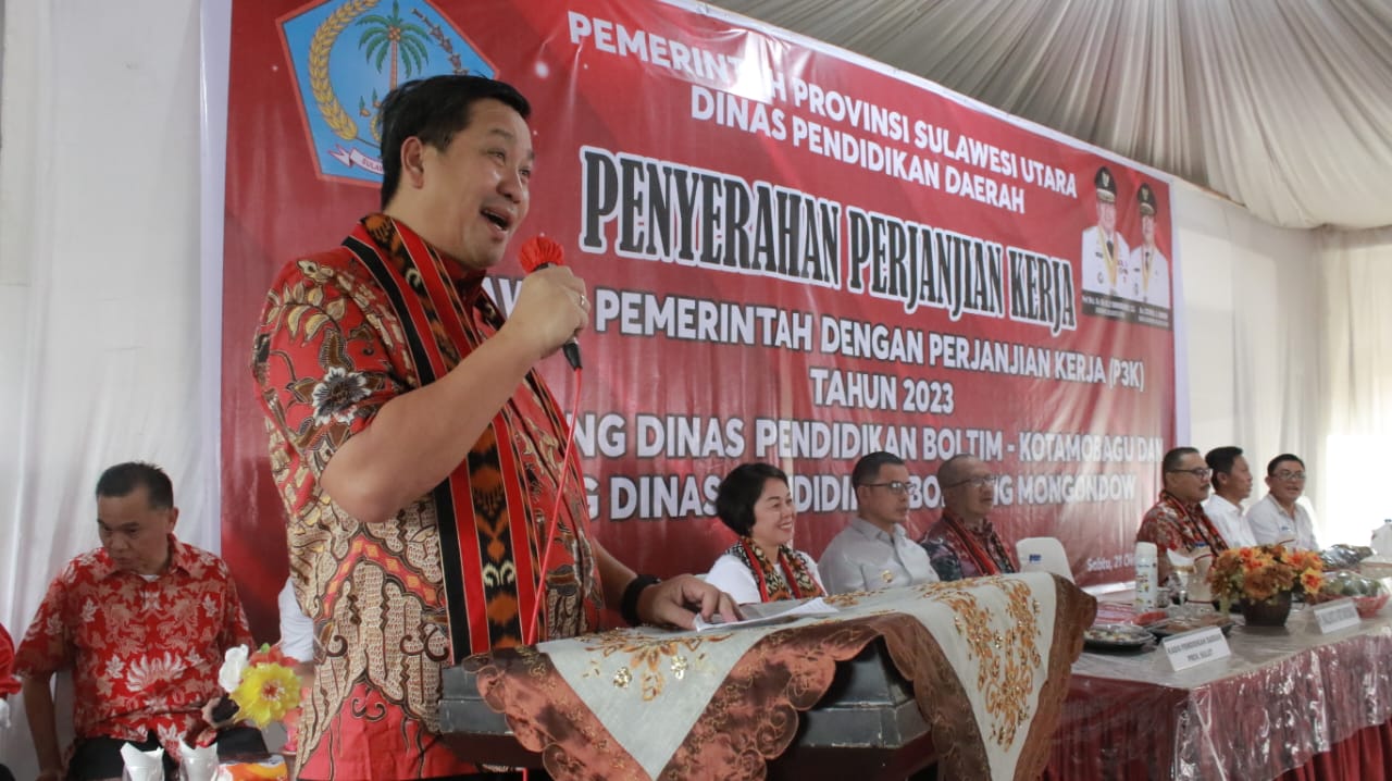 Bolmong, Sulutreview.com – Wakil Gubernur (Wagub) Provinsi Sulut Steven OE Kandouw menyerahkan SK Pegawai Pemerintah dengan Perjanjian Kerja (P3K), sekaligus memberikan pengarahan kepada kepala SMA/SMK guru se wilayah Bolmong, Kotamobagu dan Boltim, pada Sabtu (21/10/2023).