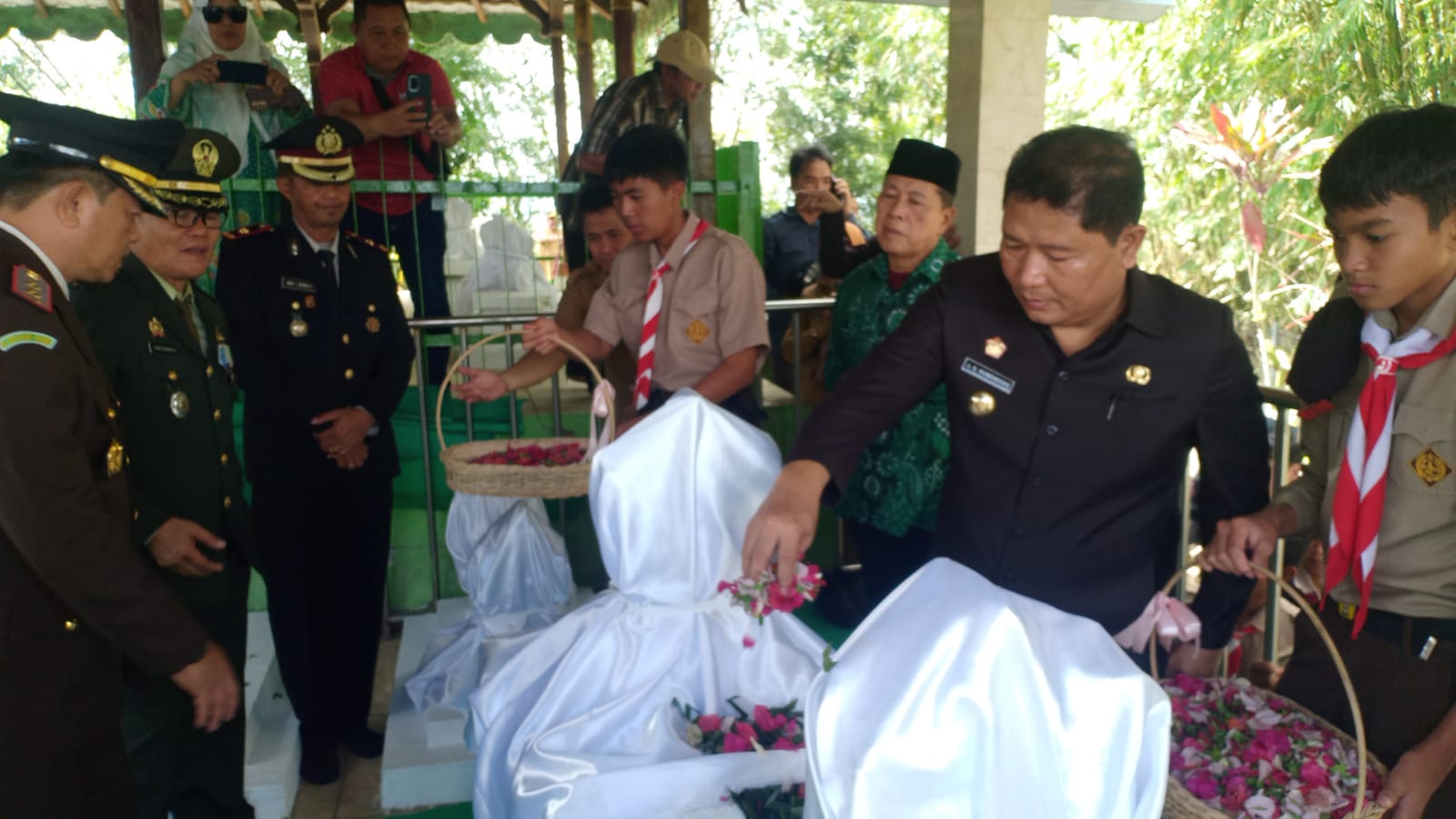 Jajaran Forkopimda, yakni Kejaksaan Negeri Tondano, Polres Minahasa, Kodim 1302 Minahasa, jajaran pejabat Pemkab Minahasa dan peserta upacara dari TNI/Polri serta siswa SMA/SMK melakukan ziarah ke makam pahlawan Dr. Gerungan Saul Samuel Jacob Ratulangi, KH. Ahmad Rifa’i, dan Kyai Modjo.