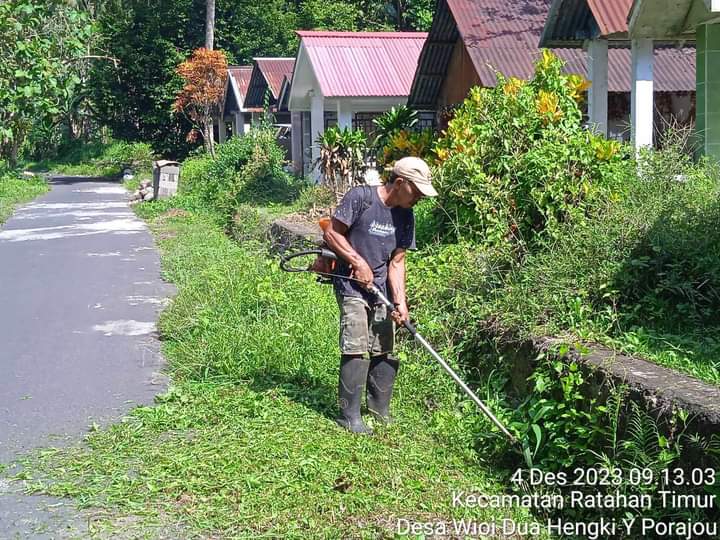 Mitra, Sulutreview – Dalam rangka menyambut Hari basar umat Kristen Natal dan Tahun baru, Pemdes Wioi Dua dan masyarakat desa melaksanakan Kerja bakti di area Pekuburan, jalan lingkar barat desa Wioi Dua serta jalan lingkar timur desa Wioi Dua, Senin (04/12/2023).