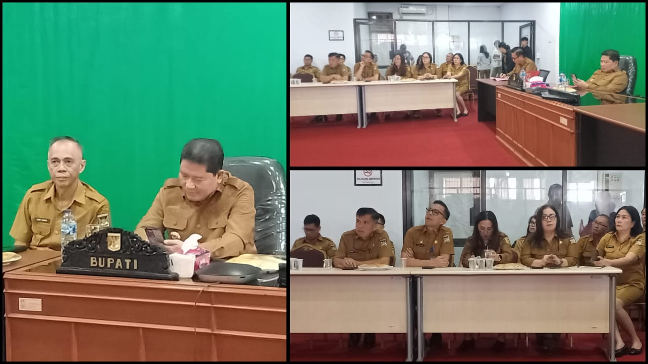 Dalam Rakoor Tersebut diikuti oleh Penjabat Bupati Minahasa Dr. Jemmy Stani Kumendong M.Si, yang bertempat di Ruangan Minahasa Command Center Kantor Bupati Minahasa.