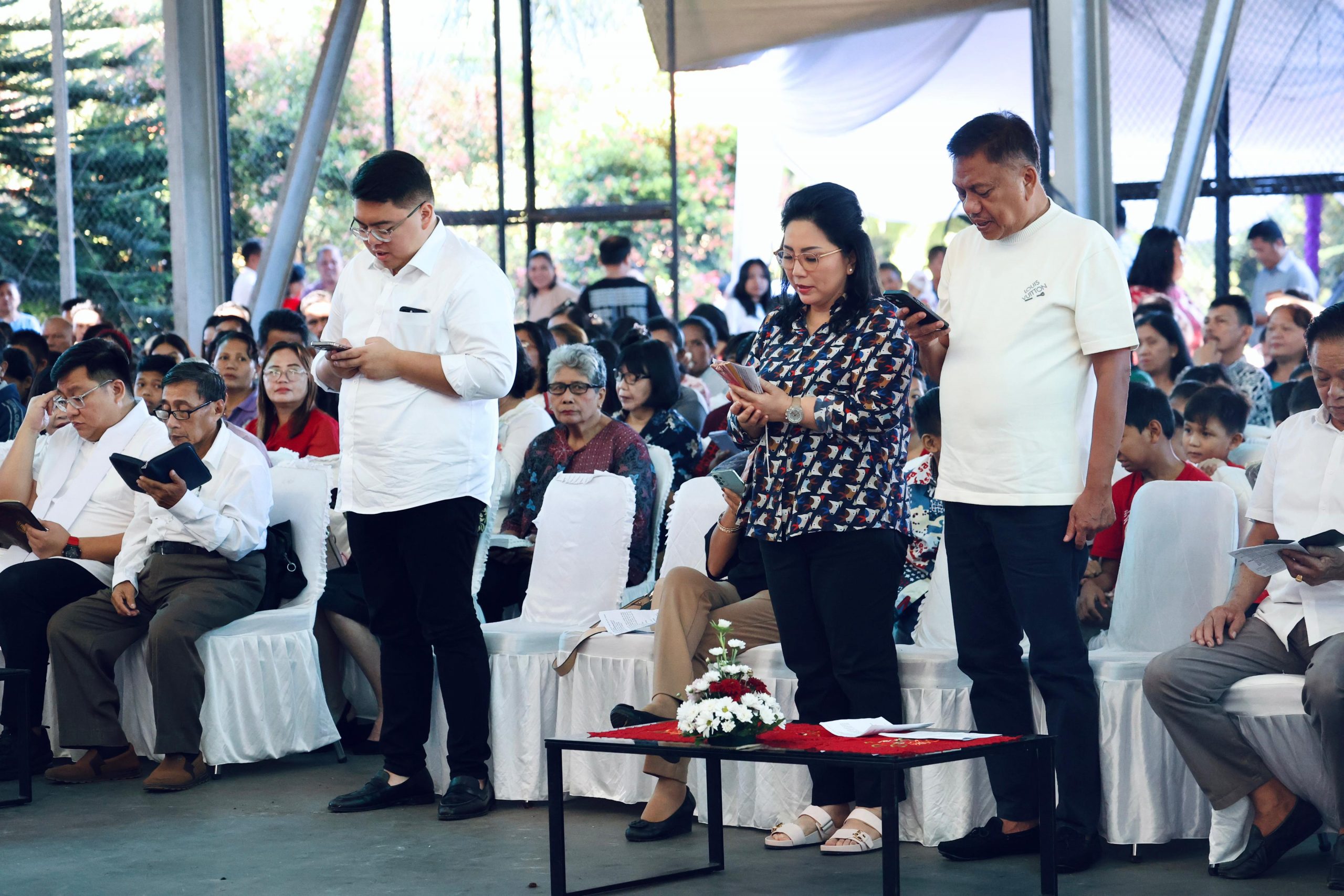 Gubernur Olly beribadah didampingi istri tercinta Rita Maya Dondokambey Tamuntuan dan anak sulung Rio Dondokambey.