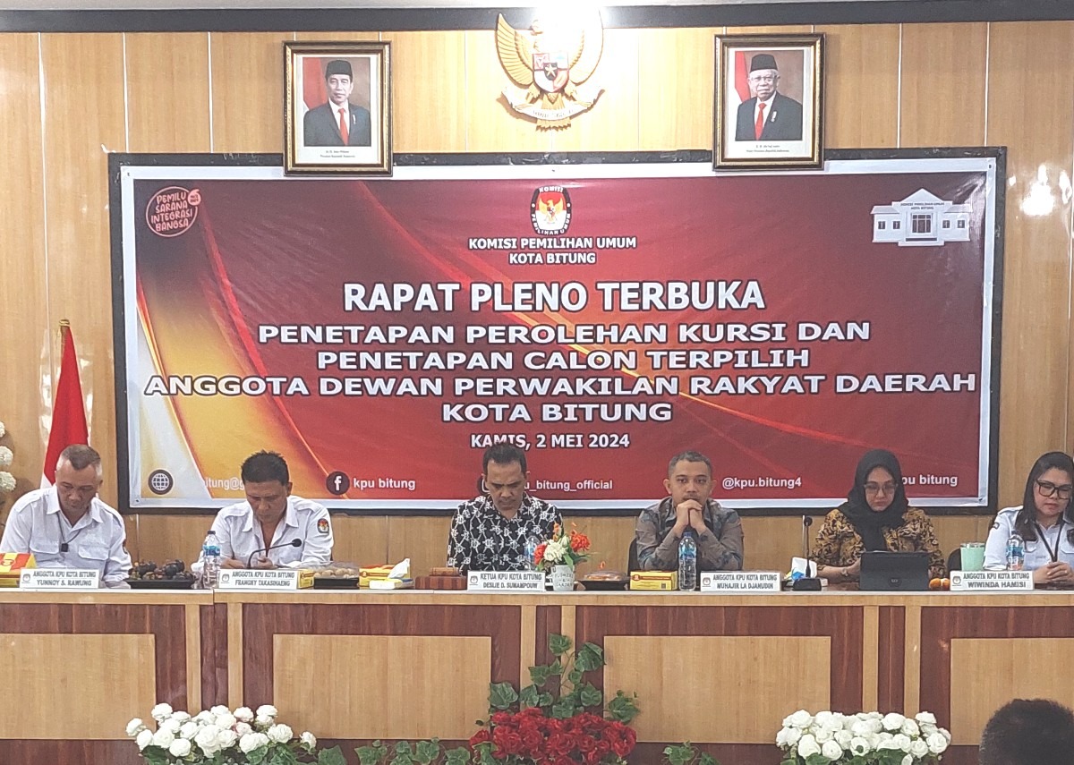 Ketua KPU mengatakan pelaksanaan rapat pleno terbuka, berdasarkan keputusan KPU Kota Bitung Nomor: 262 Tahun 2024 dan 263 Tahun 2024 tentang Penetapan Perolehan Kursi Partai Politik dan Calon Terpilih Peserta Pemilihan Umum Anggota Dewan Perwakilan Rakyat Daerah Kota Bitung dalam pemilihan umum Tahun 2024.