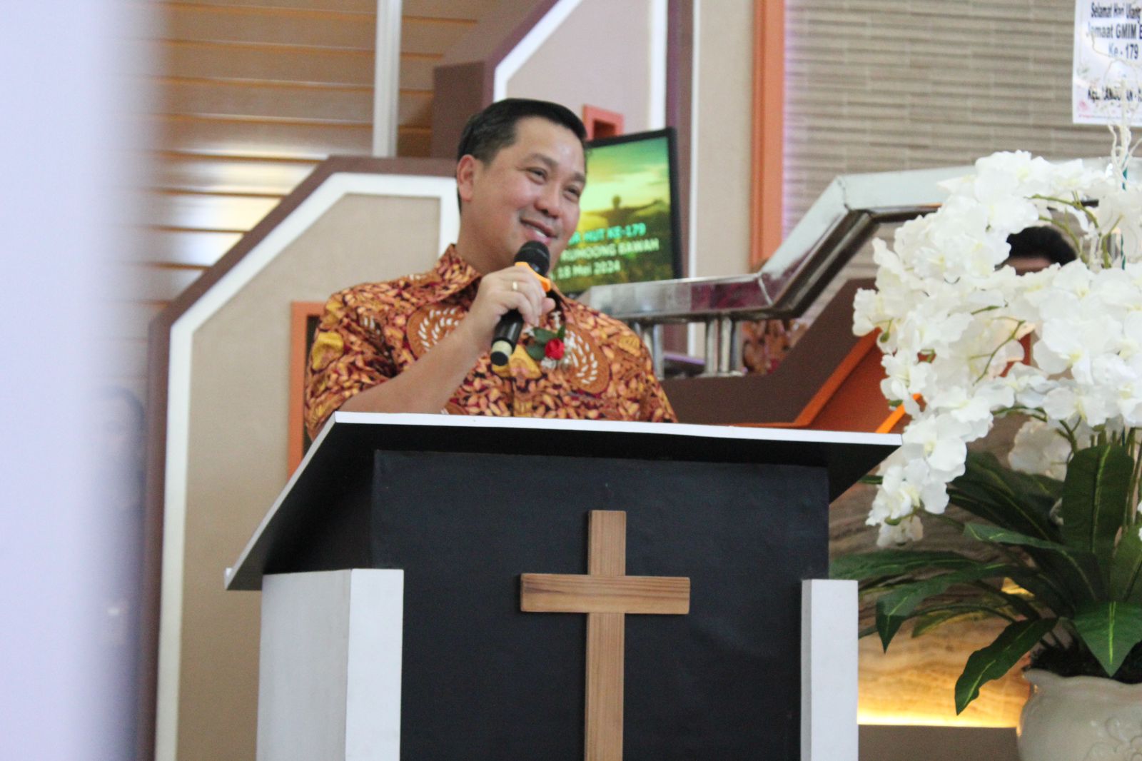 Menurutnya di usia yang ke-179 tahun, jemaat diajak untuk tidak fokus pada progress bangunan fisik semata. Melainkan juga turut memperhatikan bagaimana memunculkan damai sejahtera dan cinta kasih agar terus tumbuh di tengah persekutuan.