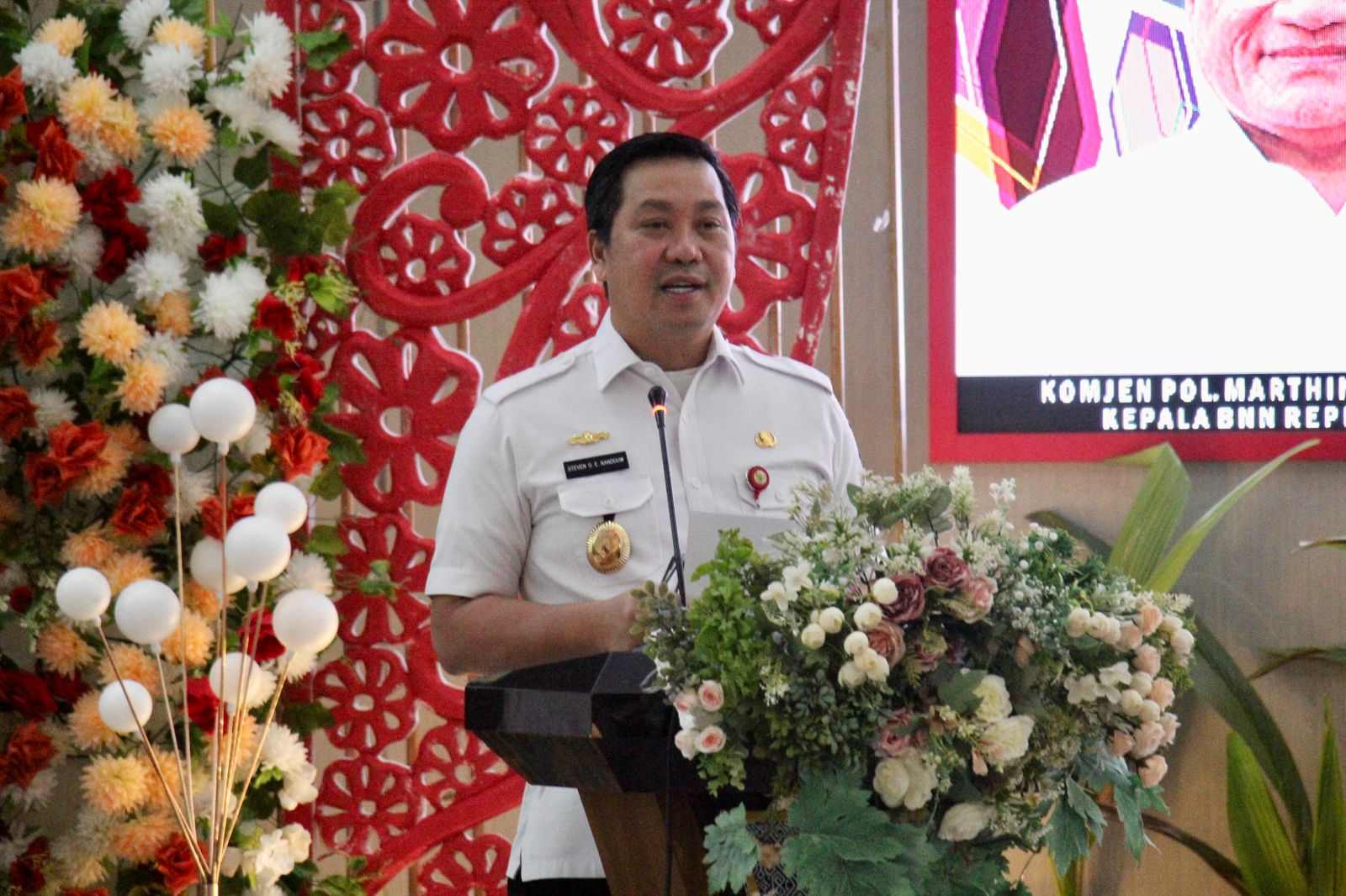 saat menghadiri peringatan Hari Anti Narkotika Internasional (HANI) tahun 2024 yang digelar di Aula Mapalus Kantor Gubernur Sulut, Rabu (26/6/2024).