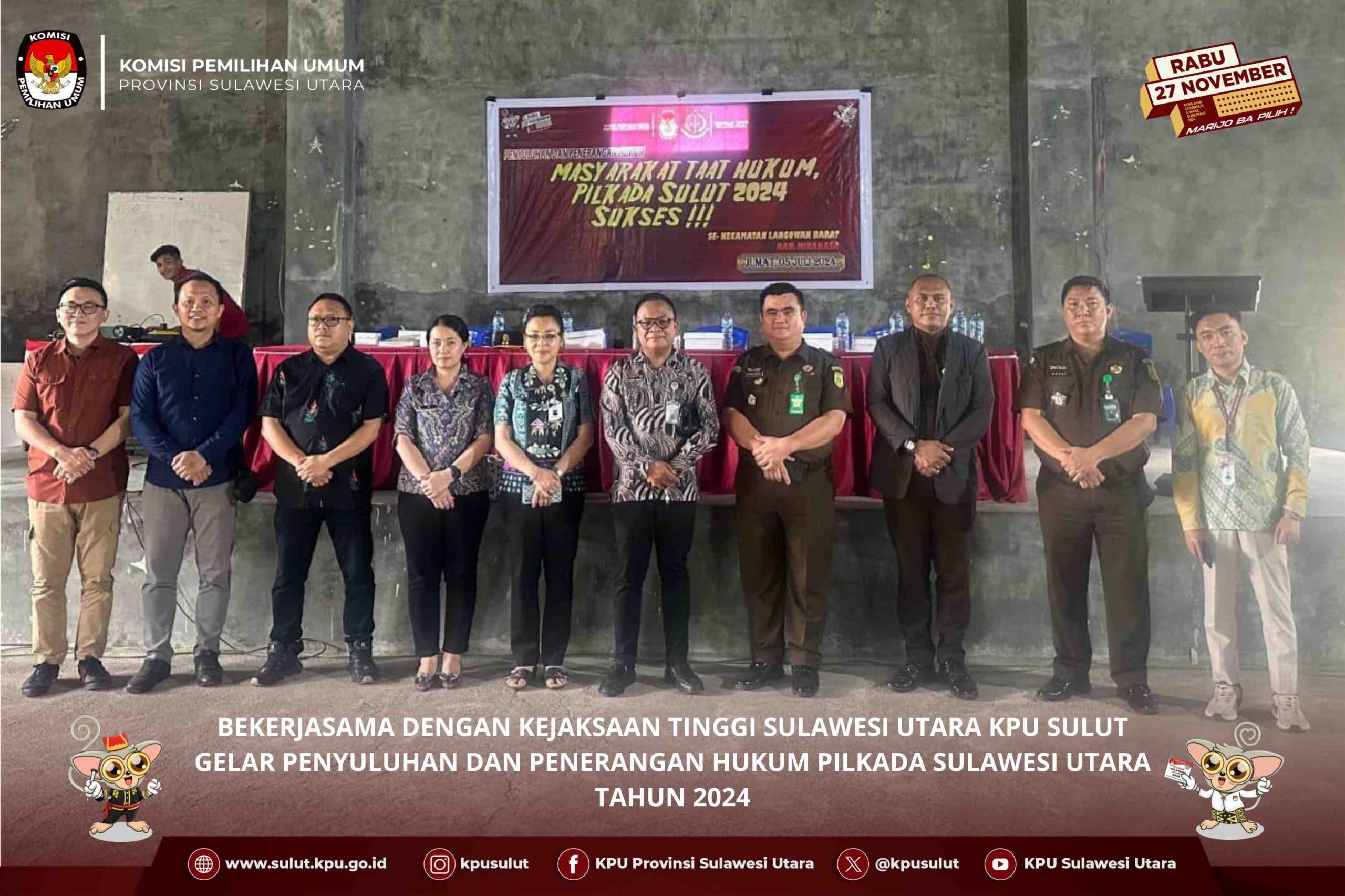 Manado, Sulutreview.com – Bekerjasama Dengan Kejaksaan Tinggi Sulawesi Utara, KPU Sulut Gelar Penyuluhan dan Penerangan Hukum Pilkada Sulawesi Utara Tahun 2024 bertempat di Desa Tumaratas Dua Kecamatan Langowan Barat Kabupaten Minahasa, hari jumat (5/7/2024).