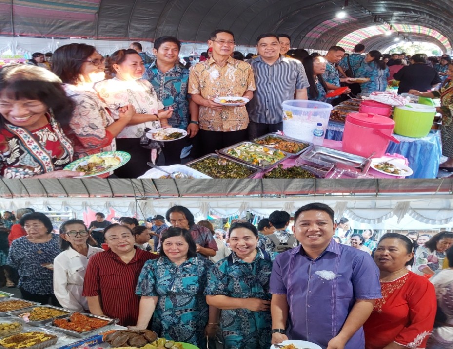 Usai ibadah HH-RM langsung berbaur dengan ratusan jemaat yang menyediakan makanan pada agenda santap kasih.